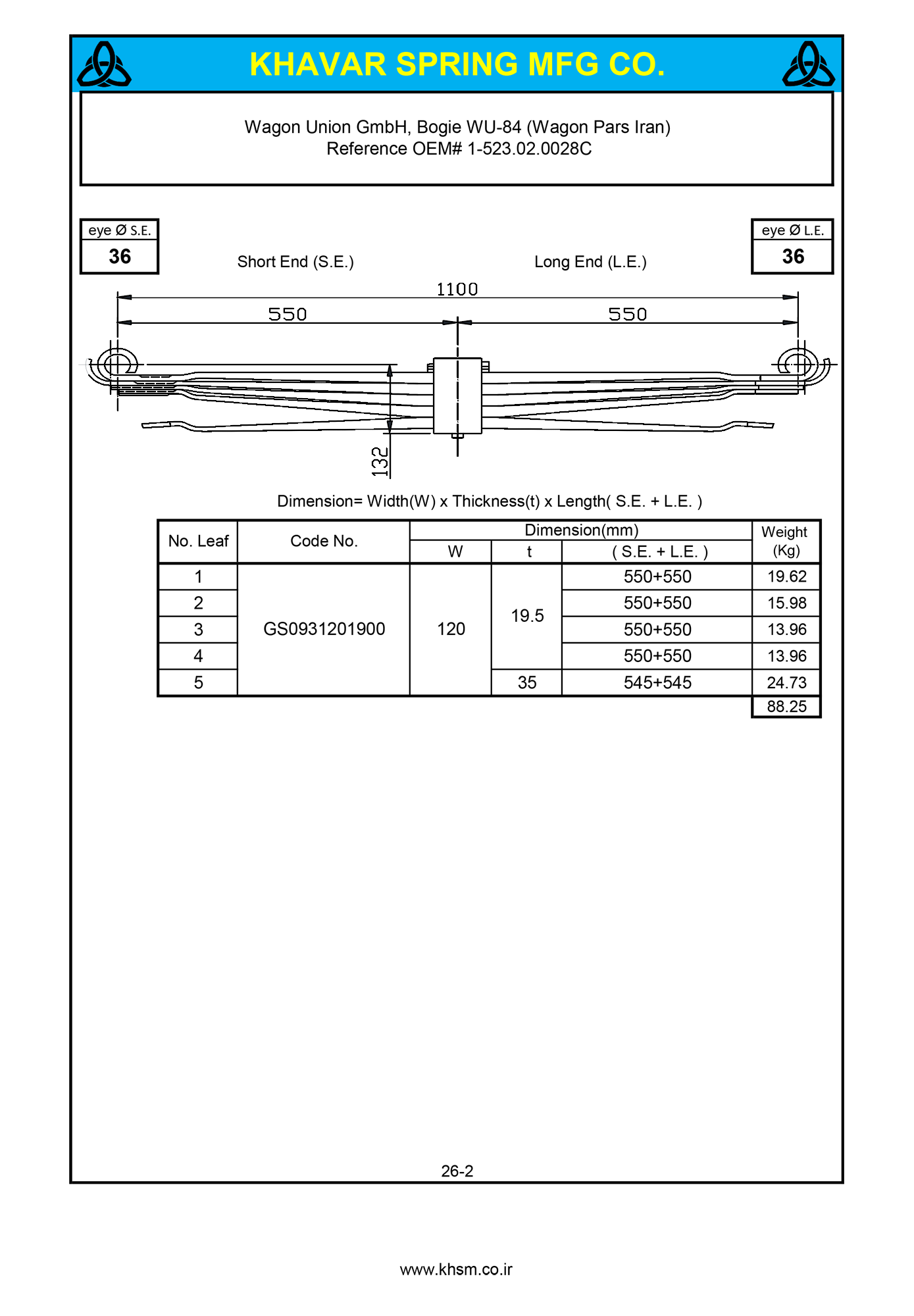 دست فنر پارابولیک واگن Waggon Union/Wagon Pars
