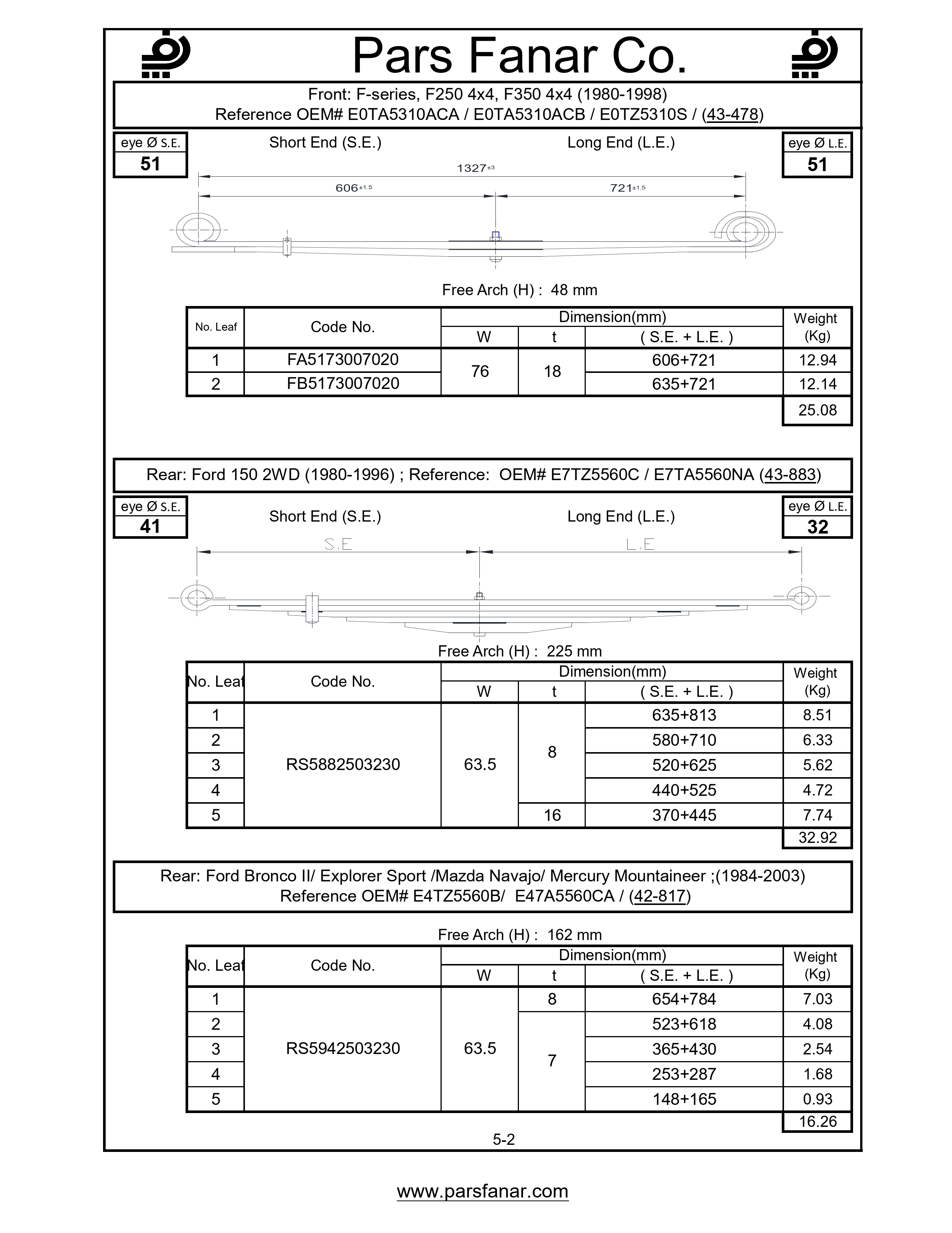 دست فنر پارابولیک چرخ جلو Ford سری F