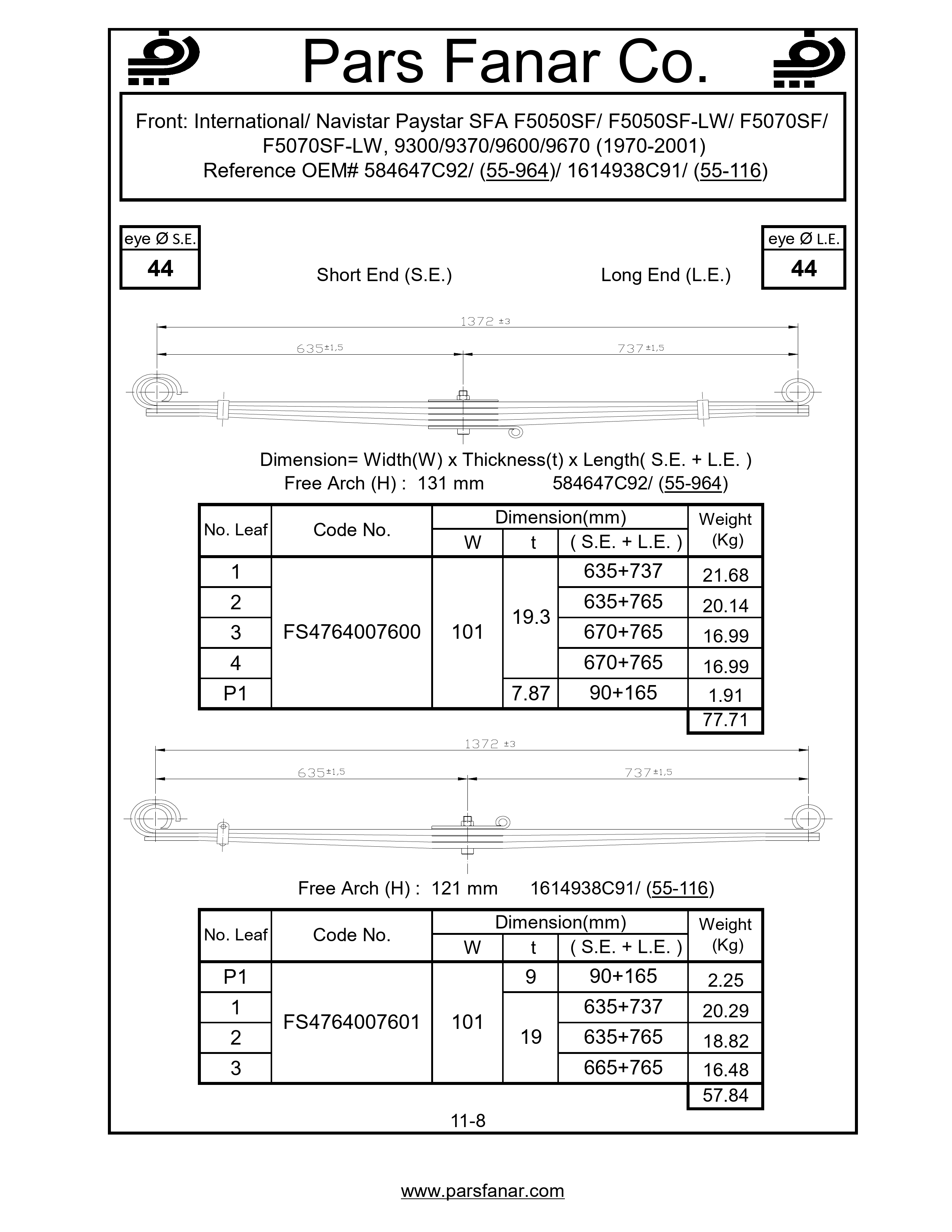 دست فنر پارابولیک چرخ جلو International/Navistar Paystar