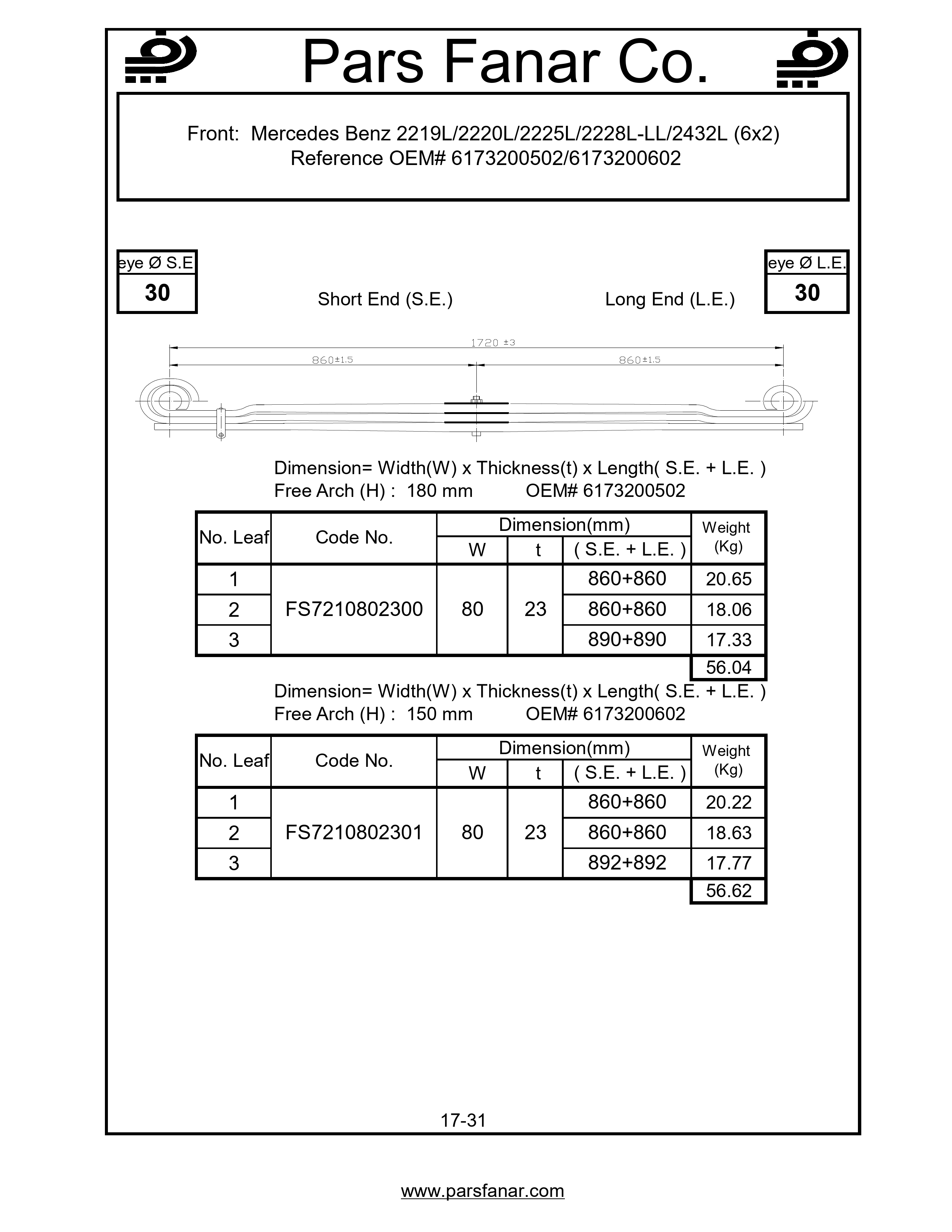 دست فنر پارابولیک چرخ جلو Mercedes Benz
