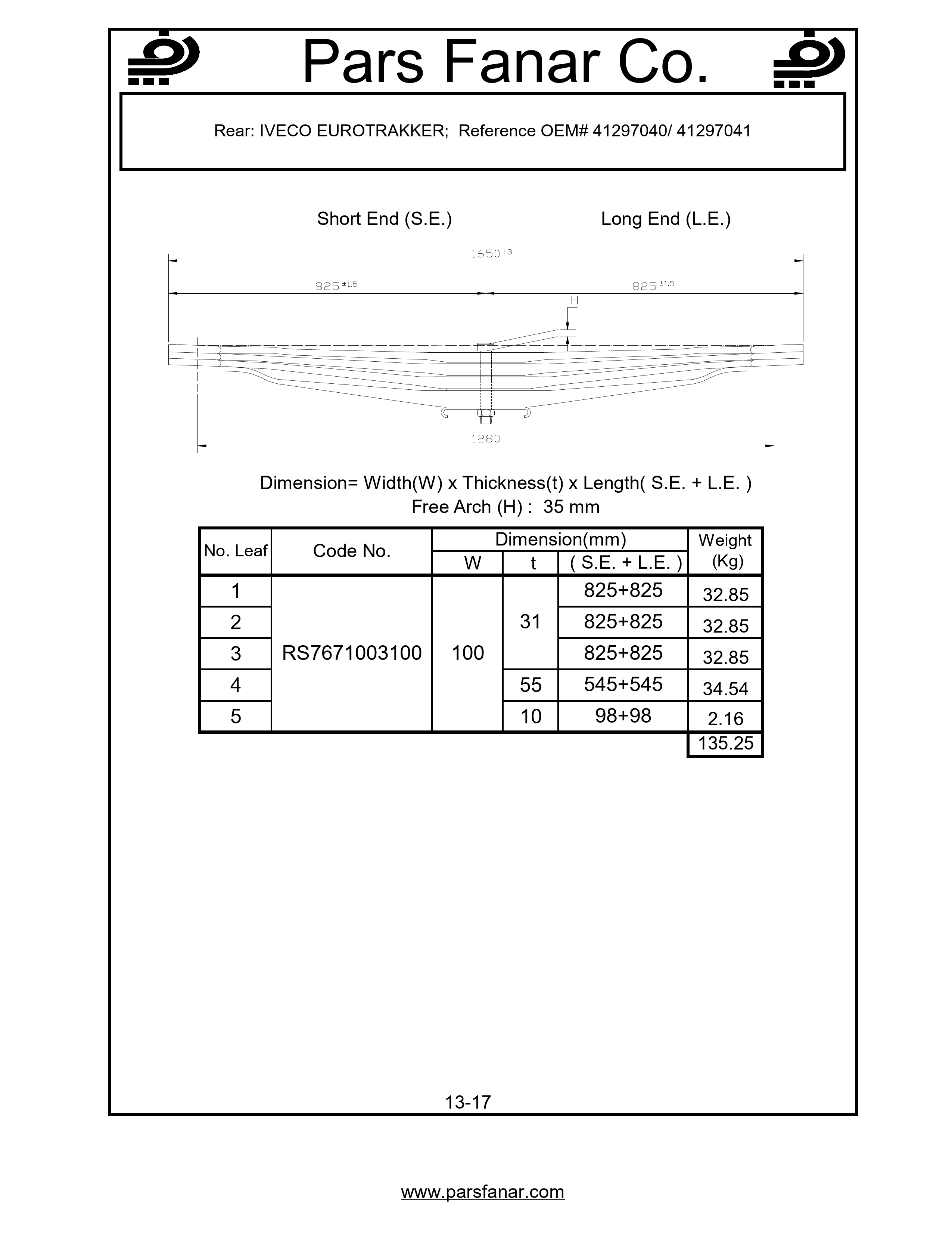 دست فنر پارابولیک چرخ عقب IVECO EUROTRAKKER