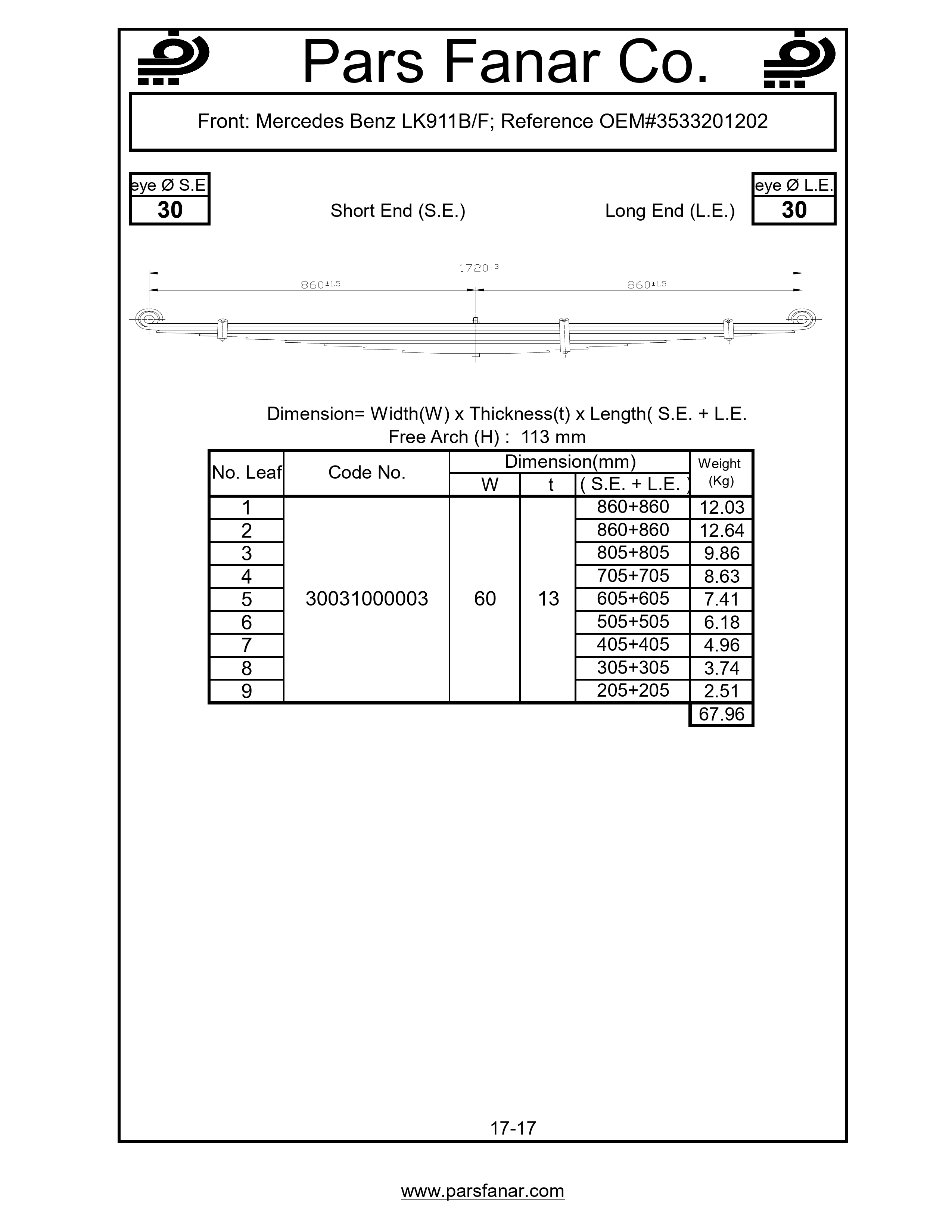 Eye diameter (Short edge - Leaf spring) | |