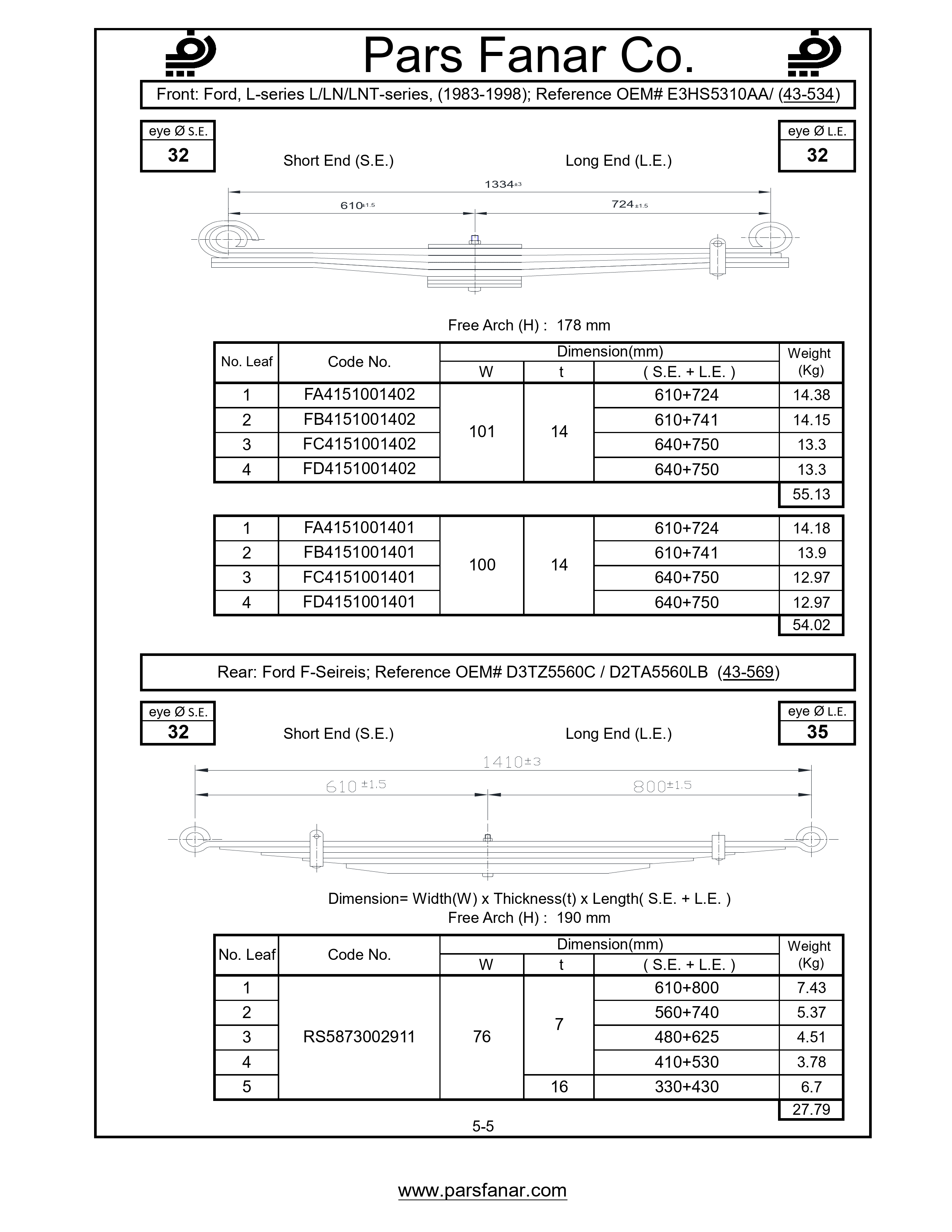 Long edge length - Leaf Spring | |