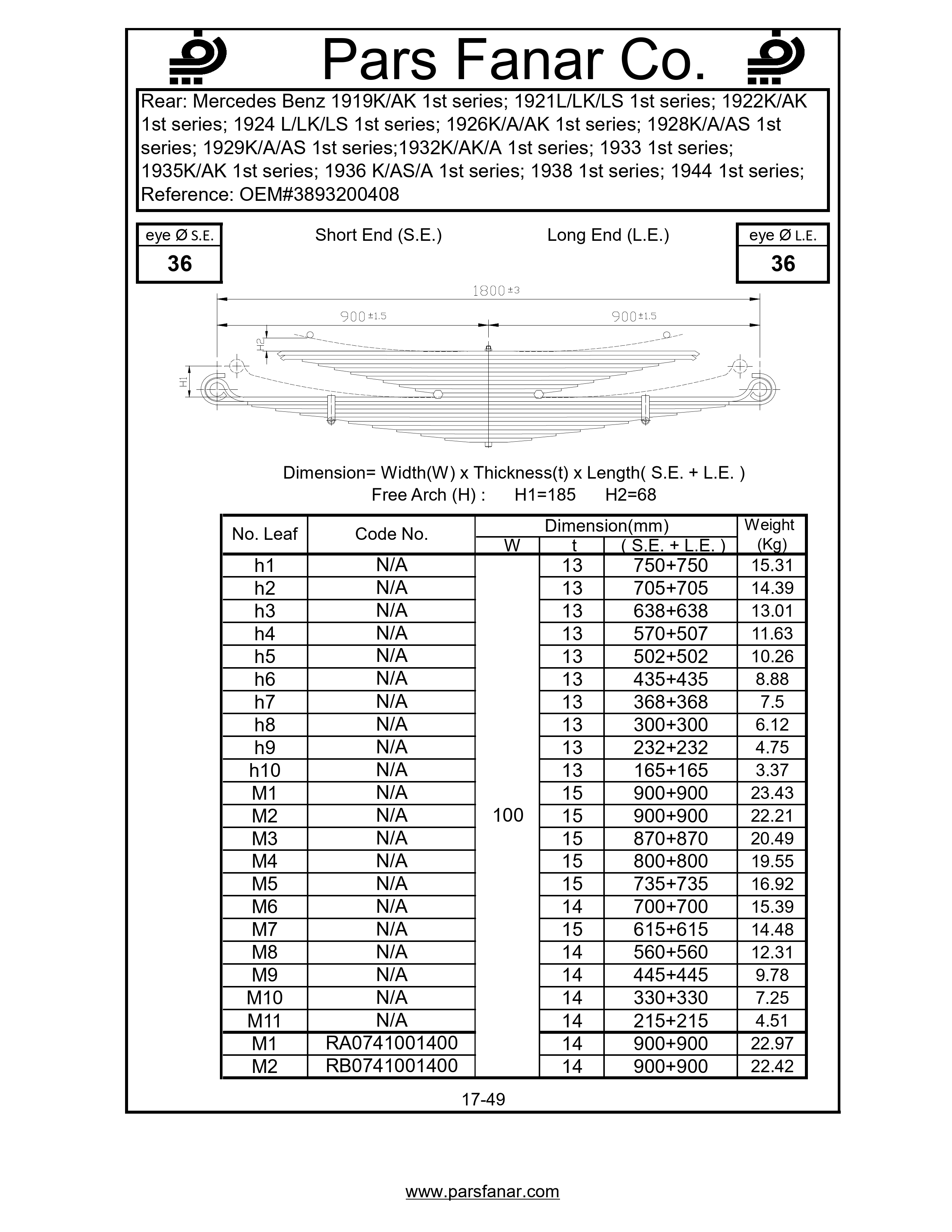 Number of Auxiliary Layers (H) Leaf Spring | |