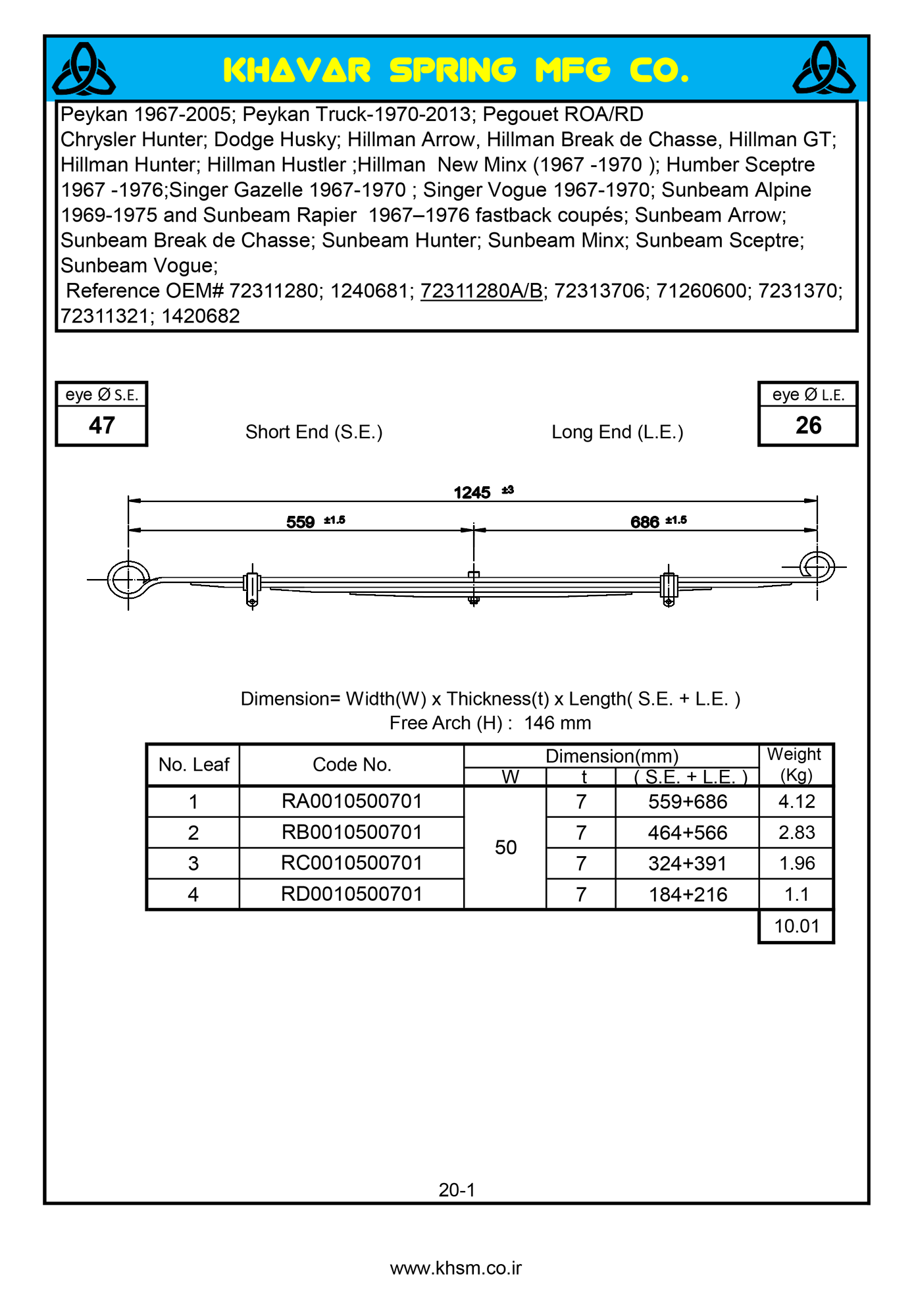 Name of Car/ Cabin/ Triler | Chrysler Hunter, Dodge Husky, Hillman Arrow, Hillman Break de Chasse, Hillman GT; Hillman Hunter, Hillman Hustler, Hillman New Minx (1967 -1970 ), Humber Sceptre 1967 -1976, Pegouet ROA/RD, Peykan Truck-1970-2013, Peykan1967-2005, Singer Gazelle 1967-1970, Singer Vogue 1967-1970, Sunbeam Alpine 1969-1975 and Sunbeam Rapier 1967–1976 fastback coupés, Sunbeam Arrow, Sunbeam Break de Chasse, Sunbeam Hunter; Sunbeam Minx, Sunbeam Sceptre, Sunbeam Vogue |