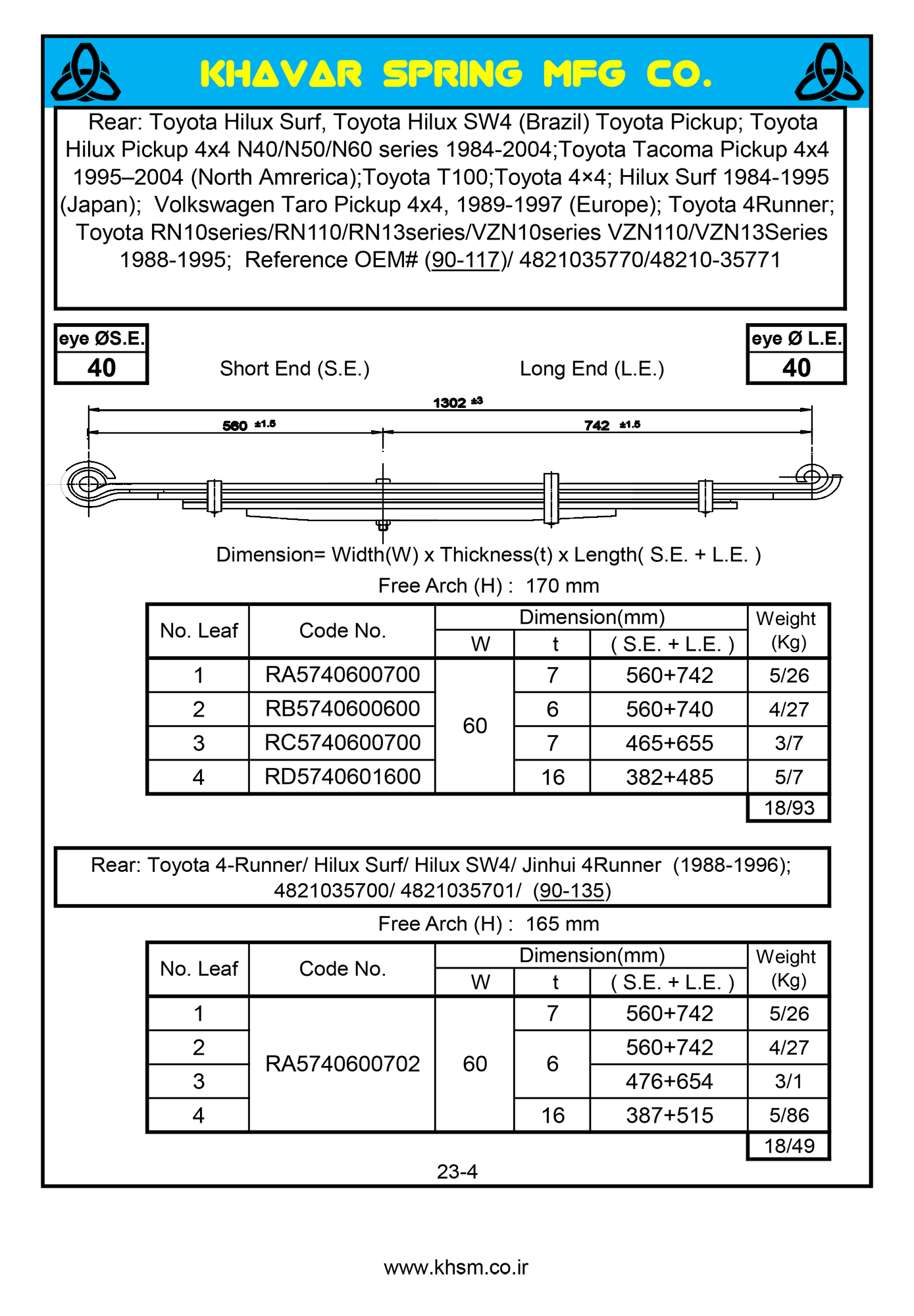 Name of Car/ Cabin/ Triler | 1989-1997 (Europe), Toyota 4×4; Hilux Surf 1984-1995 (Japan), Toyota 4Runner, Toyota Hilux Pickup 4×4 N40/N50/N60 series 1984-2004, Toyota Hilux Surf, Toyota Hilux SW4 (Brazil), Toyota Jinhui 4Runner, Toyota Pickup, Toyota RN10series/RN110/RN13series/VZN10series VZN110/VZN13Series 1988-1995, Toyota T100, Toyota Tacoma Pickup 4×4 1995–2004 (North Amrerica), Volkswagen Taro Pickup 4×4 |