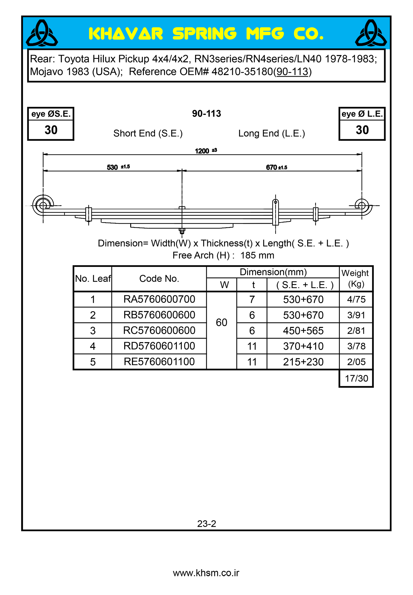 | Leaf Spring Free Arch | 185 |