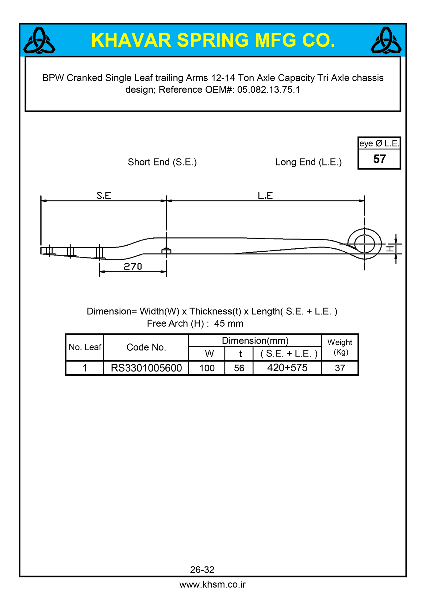 Name of Car/ Cabin/ Triler | BPW Cranked Single Leaf trailing Arms 12-14 Ton Axle Capacity Tri Axle chassis design |