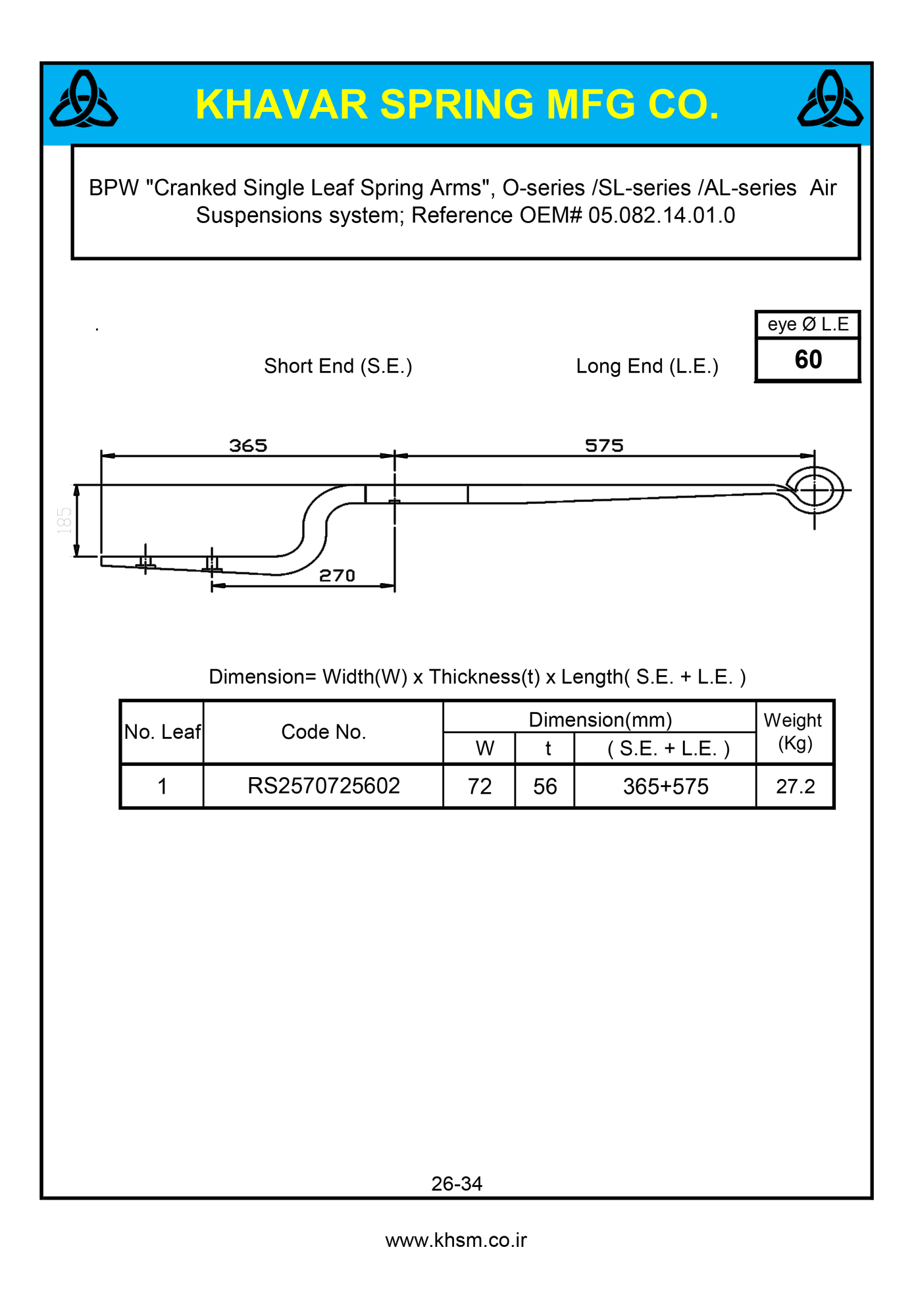 | Name of Car/ Cabin/ Triler | BPW Cranked Single Leaf Spring Arms, O-series /SL-series /AL-series Air Suspensions system |