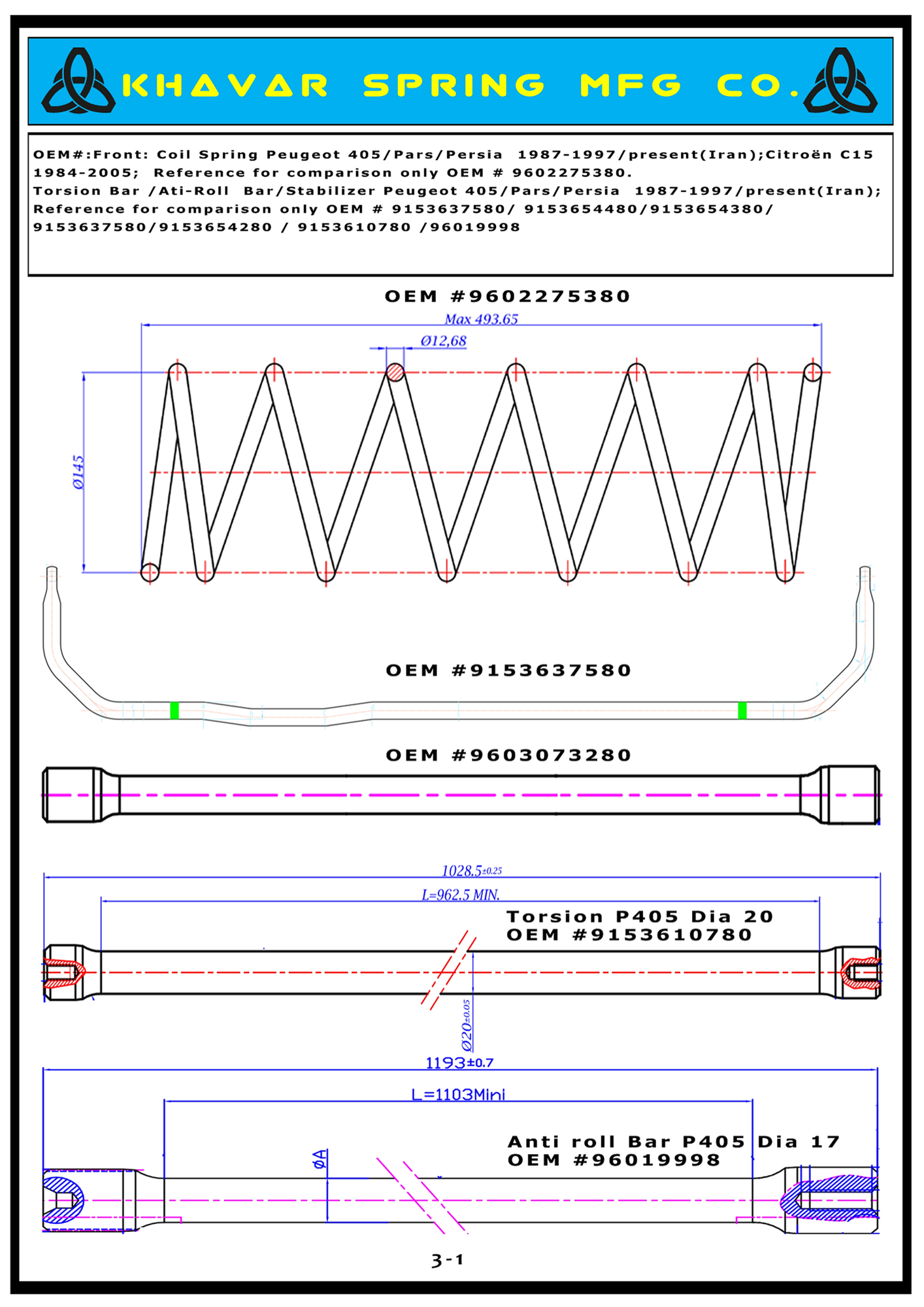 Torsion Bar/ Ati-Roll Bar/ Stabilizer Peugeot 405/ Pars/ Persia 1987-1997/present(Iran); Reference for comparison only